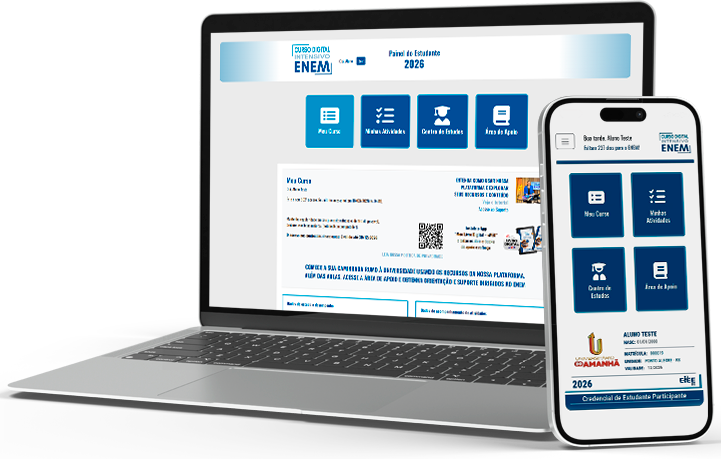 O CURSO DIGITAL INTENSIVO ENEM foi concebido para o autoestudo e suas funcionalidades e conteúdos podem ser acessados e utilizados de forma bastante prática e intuitiva, com a própria plataforma indicando as atividades realizadas, assuntos disponíveis, parâmetros básicos de desempenho, etc. Não haverá apoio presencial, nem suporte pedagógico ou acadêmico relacionados ao Curso, sejam de que formato forem.